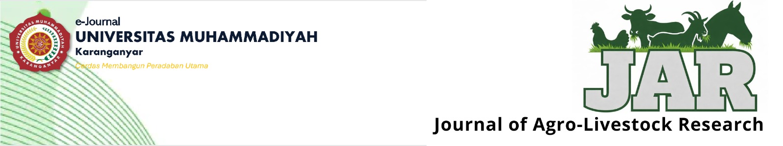 The Journal of Agro-Livestock Research (JAR) is published by Universitas Muhammadiyah Karanganyar twice a year, in June and December. All submissions are double-blind and peer-reviewed. Papers can be submitted in either BAHASA INDONESIA or ENGLISH.