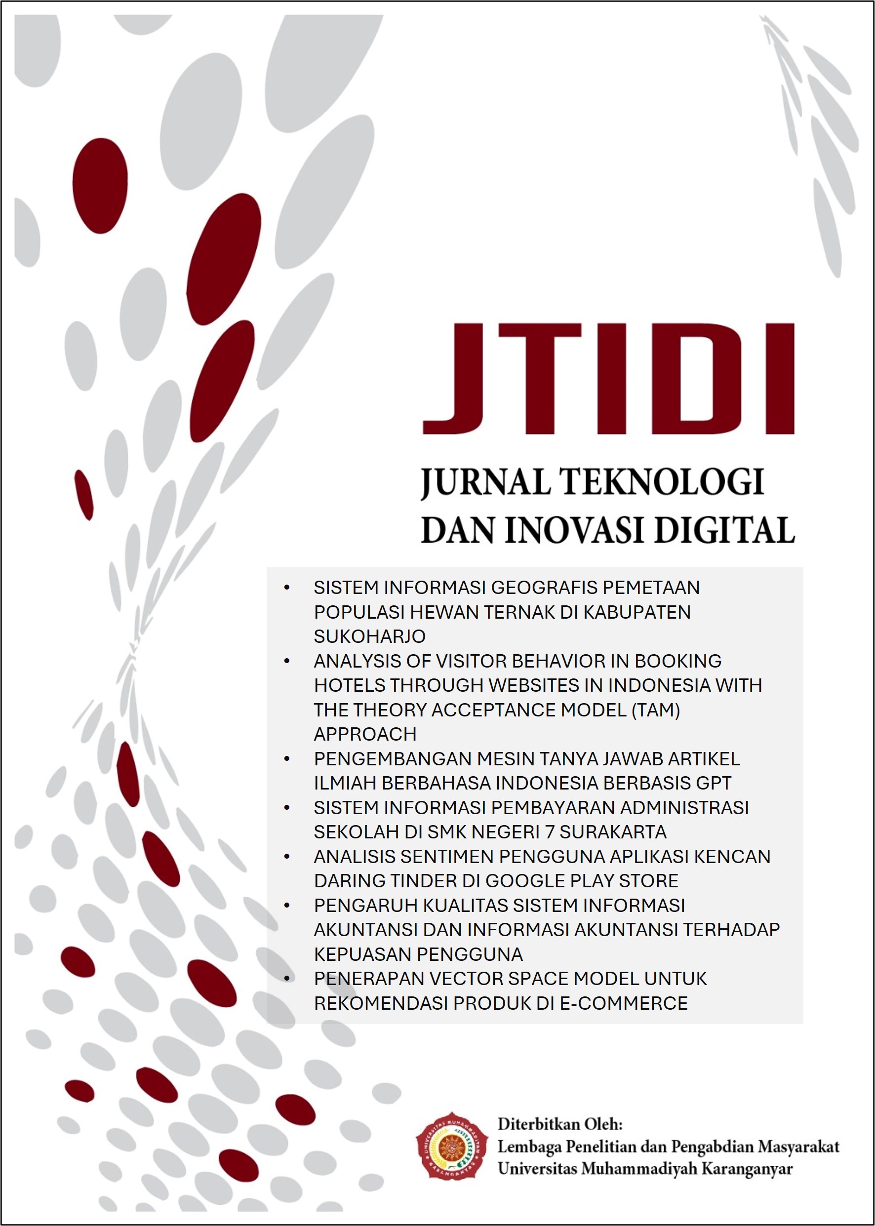 Edisi ini menyajikan beragam inovasi teknologi terbaru yang merubah cara berbagai industri beroperasi, mulai dari e-commerce hingga pendidikan dan pemetaan geografis. Dengan fokus pada kecerdasan buatan (AI), sistem informasi, dan analisis data, artikel-artikel dalam edisi ini mengeksplorasi bagaimana teknologi dapat meningkatkan efisiensi, memberikan solusi cerdas, dan memprediksi perilaku pengguna di berbagai sektor. Melalui pembahasan yang mendalam, para penulis mengungkapkan peran penting teknologi dalam menghadapi tantangan-tantangan modern, sekaligus menawarkan perspektif masa depan yang lebih cerdas dan terintegrasi.